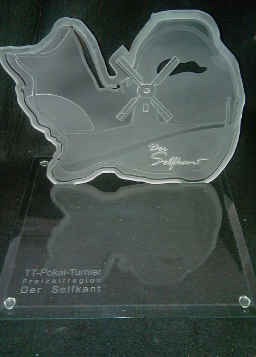Unsere Glastrophäen bestechen durch ihr edles Design und Gravuren in Sandstrahltechnik. Durch dieses Verfahren werden die Gravuren brillianter als im Laserverfahren und lassen die Glastrophäe zu einem echten Hingucker werden.