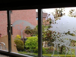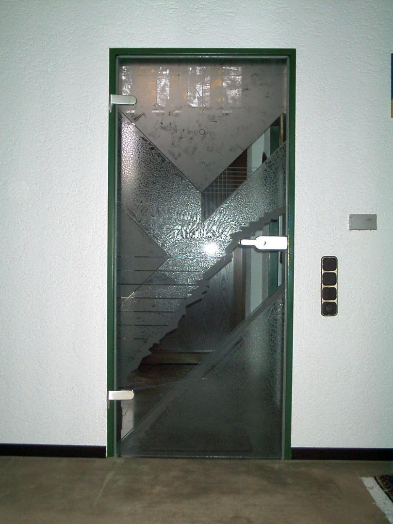Unsere Sandstrahl-Designs eignen sich ideal als Sichtschutz oder gestalterisches Element für moderne Glasfassaden und Eingangsbereiche.